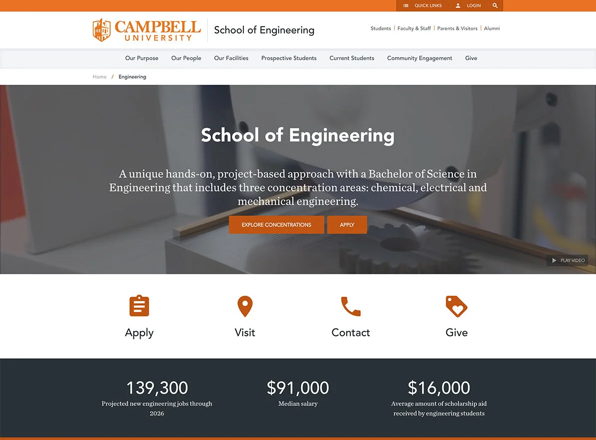 The Campbell brand was redesigned and the old website became outdated. The CMS also needed to be updated to accommodate the University’s growing needs.